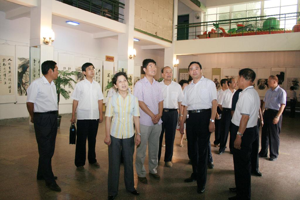 常務(wù)副會(huì)長(zhǎng)兼執(zhí)行秘書(shū)長(zhǎng)郭麗伶一行在下石節(jié)礦職工俱樂(lè)部欣賞職工書(shū)畫(huà)展