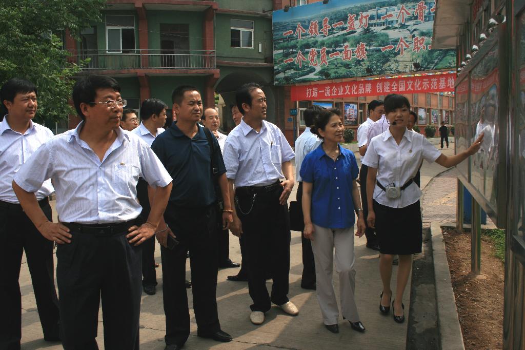 當(dāng)日上午,郭麗伶一行在公司黨委副書(shū)記李志科、副書(shū)記兼紀(jì)委書(shū)記張志文、礦區(qū)工會(huì)主席張仿文的陪同下,來(lái)到供應(yīng)處文化廣場(chǎng)觀看方陣表演并聽(tīng)取基層文化建設(shè)匯報(bào)。公司黨群部門(mén)負(fù)責(zé)人等參加上述活動(dòng)。當(dāng)日下午,郭麗伶一行在李志科等領(lǐng)導(dǎo)的陪同下,赴下石節(jié)礦參觀訪問(wèn),并聽(tīng)取匯報(bào)。他們一行還參觀了井口茶水站、廉潔文化室、職工學(xué)習(xí)室、調(diào)度室、瓦斯監(jiān)控中心。中國(guó)企業(yè)文化促進(jìn)會(huì)的馬謀超、李儉教授一邊觀看,一邊仔細(xì)詢問(wèn),了解有關(guān)企業(yè)文化的情況。8月10日上午,郭麗伶一行在張志文、張仿文和黨群部門(mén)領(lǐng)導(dǎo)的陪同下,赴王石凹礦檢查指導(dǎo)工作。