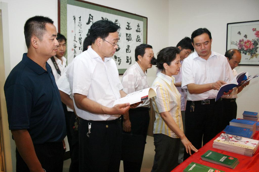 常務(wù)副會(huì)長(zhǎng)兼執(zhí)行秘書(shū)長(zhǎng)郭麗伶一行在王石凹礦資料室視察