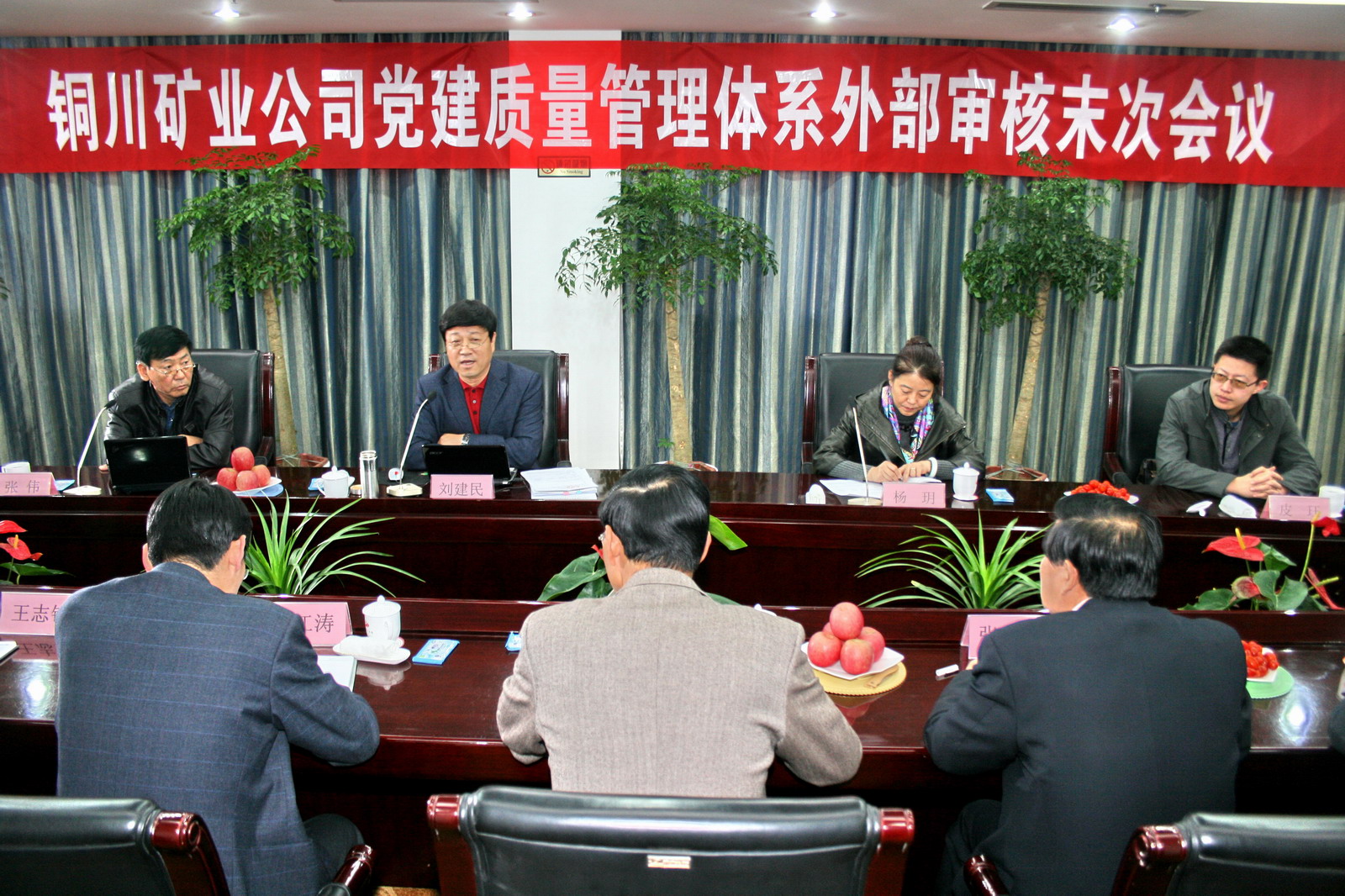 北京新世紀(jì)認(rèn)證有限公司西安分公司總經(jīng)理?xiàng)瞰h、副總經(jīng)理皮玨,北京新世紀(jì)認(rèn)證有限公司、國(guó)家注冊(cè)高級(jí)審核員劉建民,北京新世紀(jì)認(rèn)證有限公司審核組成員、國(guó)家注冊(cè)高級(jí)審核員張偉,銅川礦業(yè)公司黨委書(shū)記杜樹(shù)山、黨委副書(shū)記、紀(jì)委書(shū)記張志文,公司黨群各部門(mén)負(fù)責(zé)人,公司黨建質(zhì)量管理體系內(nèi)部審核領(lǐng)導(dǎo)小組辦公室各成員,陳家山礦、下石節(jié)礦、玉華礦、東坡礦、王石凹礦、鐵運(yùn)公司、供應(yīng)處、史家河社區(qū)等受審核單位黨委書(shū)記等參加了會(huì)議。