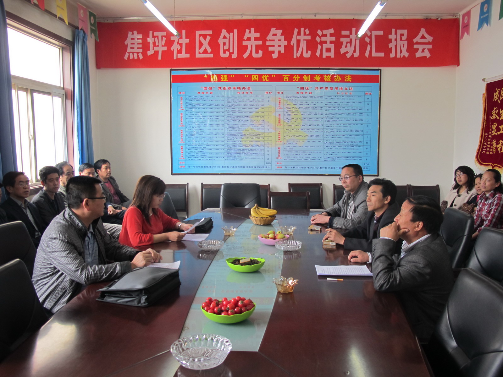 4月27日下午,公司(局)創(chuàng)先爭優(yōu)活動領(lǐng)導(dǎo)小組一行到焦坪社區(qū)管理中心檢查指導(dǎo)工作。領(lǐng)導(dǎo)小組成員何剛、成冰芳、寇長安、劉興、趙春雷聽取了社管中心一年來在創(chuàng)先爭優(yōu)活動中做的各項工作,按照檢查程序,社管中心離退休人員、女工、一線職工、機(jī)關(guān)部分代表15人對社管中心領(lǐng)導(dǎo)班子進(jìn)行了測評,何剛一行檢查了各類資料和會議記錄,肯定了在以創(chuàng)建“四好”黨組織,“四優(yōu)”共產(chǎn)黨員為主要內(nèi)容的創(chuàng)先爭優(yōu)活動中,能夠按照內(nèi)容和要求進(jìn)行,隊伍建設(shè)和黨員思想素質(zhì)不斷提高,服務(wù)群眾、服務(wù)職工意識不斷增強(qiáng),在民生建設(shè)和人居環(huán)境改善方面做了大量卓有成效的工作,職工群眾普遍滿意,充分發(fā)揮了黨委核心作用、黨支部戰(zhàn)斗堡壘作用和黨員先鋒模范作用。同時,提出了在檢查當(dāng)中存在的問題和今后整改的意見。