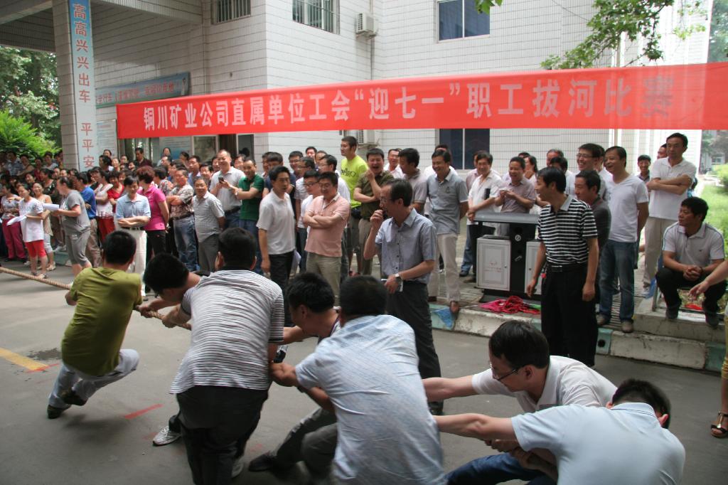 為喜迎黨93周年華誕,6月25日下午,公司直屬單位工會(huì)舉辦了“迎 七一”職工拔河比賽。來(lái)自公司機(jī)關(guān)各部門(mén)、礦工報(bào)社的34支參賽隊(duì)的300余名職工參加了比賽。