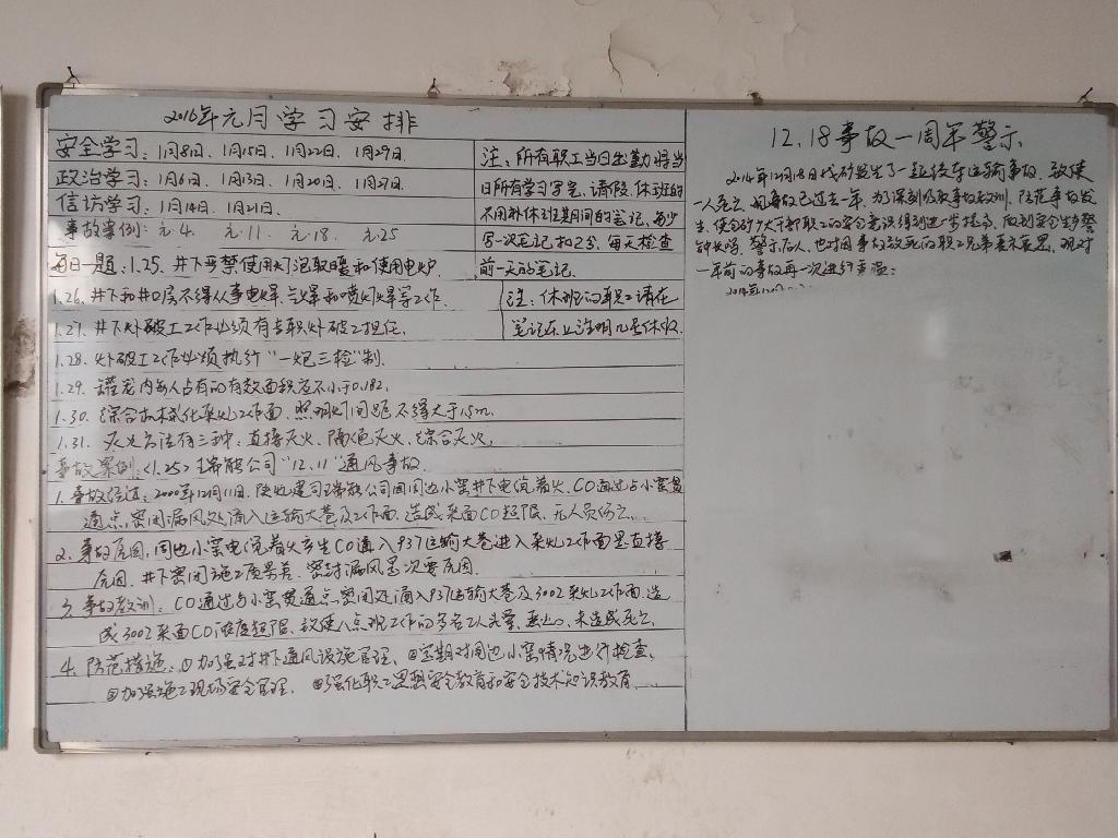 為改變這一現狀,該區(qū)隊遂對全隊90余名職工學習座次進行明確,對每名職工學習筆記本放置位置進行規(guī)范,每月初按照礦月度學習安排對區(qū)隊全月安全、政治、信訪等學習時間及內容進行明確,對相關事項在區(qū)隊學習室的明顯位置進行張貼告知,對“每日一題“、事故案例、礦臨時召開的會議、下發(fā)的文件通知等學習內容及時進行更新。