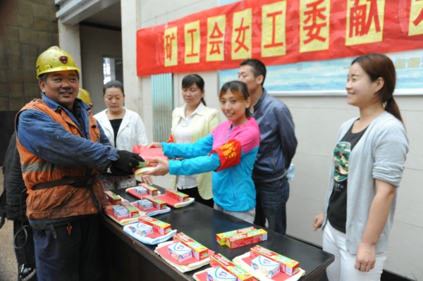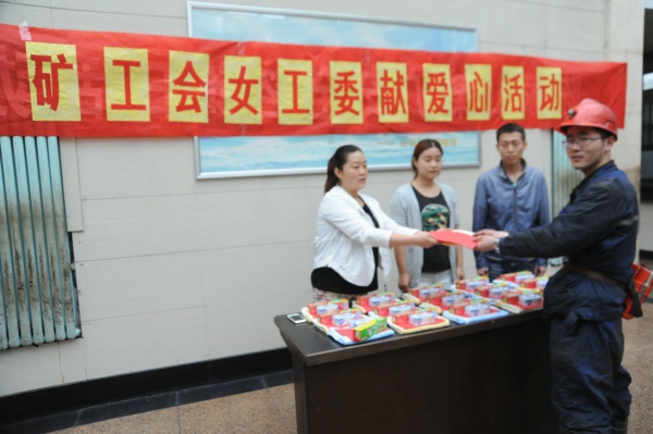 連日來(lái),陳家山礦工會(huì)、安培中心聯(lián)合組織女工及家屬協(xié)管員在井口開(kāi)展獻(xiàn)愛(ài)心活動(dòng)。