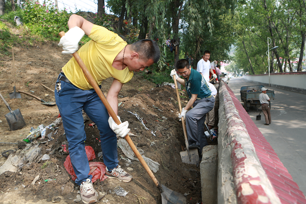 在礦外文化路,由于連綿雨水造成山體下滑,直接影響人們出行道路安全,面對(duì)數(shù)百米滑坡隱患帶,所有參與黨員干部,不怕臟、不怕累,挽起褲管開(kāi)始投入到起護(hù)坡的工作中。特別是女黨員干部更是踴躍投入到起護(hù)坡的大軍中,有的手上磨出了泡,但還是堅(jiān)持與男同志一起將隱患點(diǎn)的護(hù)坡帶所有雜物清除,確保了道路安全。另一路黨員干部則沿著礦外排洪溝一路清淤泥、雜物,碰到又臟又臭的垃圾有的黨員便挽起袖子空手去掏雜物,直至礦外排洪溝雜物清理完畢。