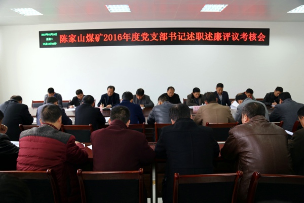 3月14日,陳家山礦召開2016年度黨支部書記述職述廉評議考核會,所屬20個基層單位的黨支部書記接受了年度評議考核。