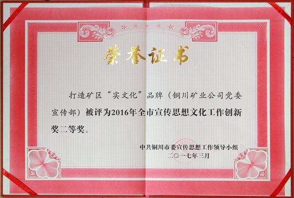 “天下萬(wàn)物,皆成于實(shí)?!毕率?jié)礦始終堅(jiān)持“文化強(qiáng)企”戰(zhàn)略,打造獨(dú)具特色的“實(shí)·文化”品牌,將企業(yè)文化與安全、生產(chǎn)、經(jīng)營(yíng)、服務(wù)完美融合,以文化軟實(shí)力全面提升企業(yè)發(fā)展硬實(shí)力。在3月9日召開的銅川市宣傳思想文化工作會(huì)上傳來(lái)喜訊,下石節(jié)礦“實(shí)·文化”品牌被市委宣傳思想工作領(lǐng)導(dǎo)小組評(píng)為2016年全市宣傳思想文化工作創(chuàng)新獎(jiǎng)二等獎(jiǎng)。