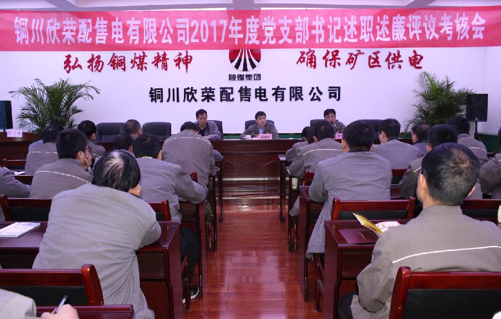 2月9日,銅川欣榮配售電有限公司黨總支,為深入學(xué)習(xí)貫徹黨的十九大精神和習(xí)近平新時代中國特色社會主義思想,進(jìn)一步推動全面從嚴(yán)治黨向基層延伸,提升基層黨建工作和黨風(fēng)廉政建設(shè)工作成效,按照礦業(yè)公司黨委《關(guān)于做好2017年度所屬單位黨委書記抓黨建述職述廉評議考核工作的通知》精神,召開2017年度黨支部書記述職述廉考核會議。該公司領(lǐng)導(dǎo)班子成員,各黨支部書記、各部門負(fù)責(zé)人、黨員及職工代表50余人參加會議。