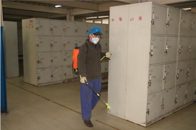 后勤服務(wù)中心的疫情防控工作主要包括項目部職工一、二號生活區(qū)人員出入監(jiān)測點,“兩堂一舍”、機關(guān)辦公樓、聯(lián)合辦公區(qū)、信息站、副絞房、礦燈房等區(qū)域的每天兩次打藥消毒。各疫情監(jiān)測點對返礦職工的詳細(xì)信息進(jìn)行登記,逐個詢問返礦職工春節(jié)期間的活動軌跡,測量體溫正常后,辦理了出入證,并對宿舍進(jìn)行消毒。