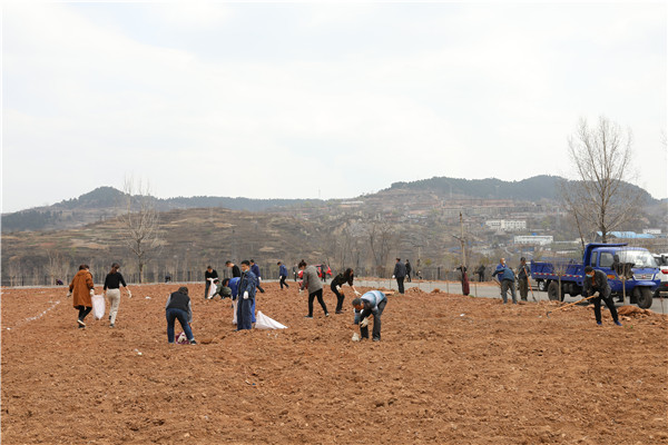 3月31日下午,風(fēng)和日麗,春意滿地。玉華煤礦機關(guān)科室百余名黨員干部來到各自掛牌栽植的樹苗旁,除雜草、撿石塊,用汗水和雙手守護一抹新綠。
