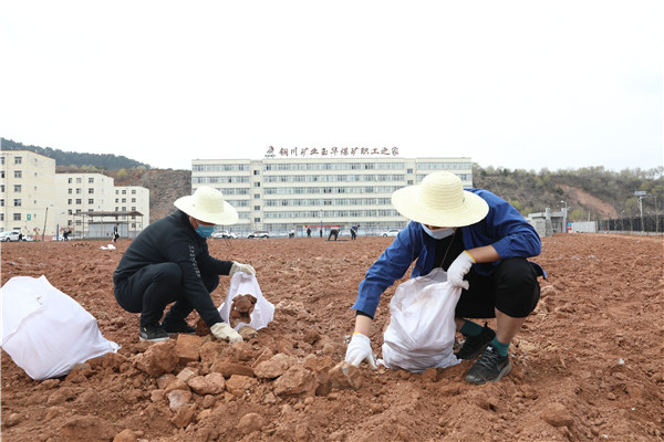 為了使幼株茁壯成長,該礦黨政對60畝綠植區(qū)再次進行標(biāo)線劃分,機關(guān)科室除下井跟班、值班人員外,近百名黨員干部帶上工具來到責(zé)任區(qū),有人揮起鐵鍬除雜草,有人拽起耙子刨石塊,大家將石塊裝進編織袋,攜手合作抬到路邊裝車。一個個穿梭的背影,一下午的揮汗如雨,雜草石塊全部清除干凈。一個個喜悅的笑容,展示著“勞動最光榮”。