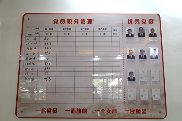 黨員積分以黨支部為單位按月度考核,月季度公示、年度評(píng)估具體組織實(shí)施,實(shí)行“一人一檔,跟蹤管理”。各黨支部制定黨員計(jì)分管理公示欄,每月公開(kāi)黨員積分管理情況,并接受黨員查詢,讓黨員全過(guò)程參與積分管理,清楚個(gè)人積分情況、積分位次以及考核評(píng)議結(jié)果,同時(shí),采取專(zhuān)干記錄、支委初審、大會(huì)決定、支部公示、上級(jí)備案等5個(gè)層級(jí),切實(shí)保障黨員的知情權(quán)、參與權(quán)和監(jiān)督權(quán),確保積分制管理工作公開(kāi)公平公正。