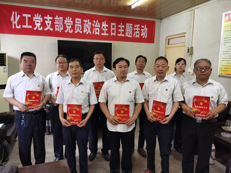 “張金明同志,感謝你在生產(chǎn)經(jīng)營(yíng)和支部黨建工作中發(fā)揮模范作用,今天給你過(guò)政治生日,希望你不忘初心牢記使命,在今后的工作中擔(dān)當(dāng)作為永葆本色。”化工黨支部書(shū)記潘生林對(duì)支部紀(jì)檢委員、黨員張金明說(shuō)。