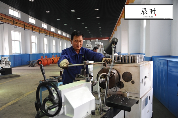 8時(shí),太陽自東方升起,陽光照耀大地。這座以“煤”聞名的山城開始蘇醒??矗瑱C(jī)電車間一車間段軍照正在準(zhǔn)備井下使用一些小配件,他可是工友公認(rèn)的“車床能手”。