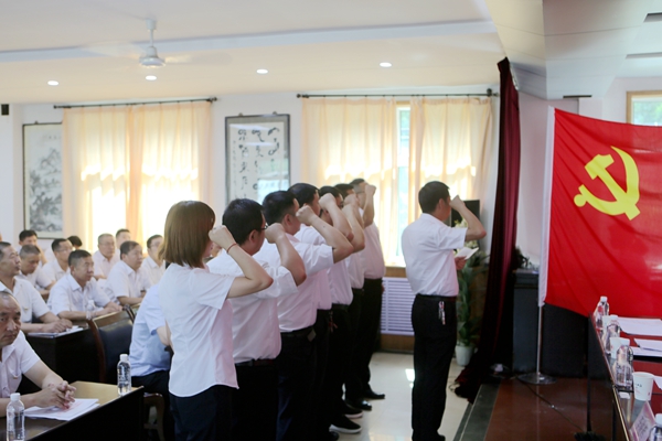 會上,納新黨員在鮮紅的黨旗下進行了莊嚴的宣誓。