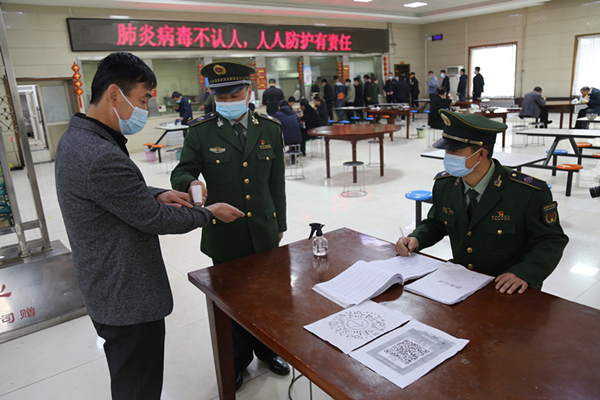 “請出示出入證,掃碼,在這里登記……?!变N售部黨員荀康康在礦南大門入口處,對出入的人員進(jìn)行詢問、登記,嚴(yán)格把控著礦區(qū)入口。