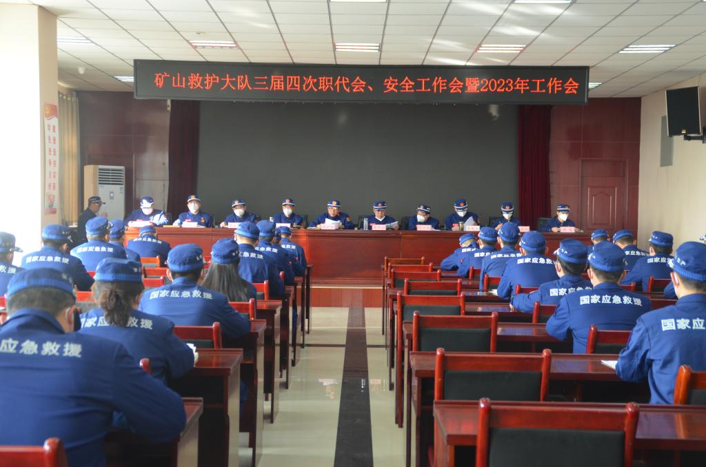 大隊長作了《強化應(yīng)急救援主業(yè) 深化安全服務(wù)職能 奮力譜寫隊伍高質(zhì)量發(fā)展新篇章》的行政工作報告,報告從隊伍建設(shè)、裝備管理、日常訓練、應(yīng)急演練、應(yīng)急值守、對外服務(wù)、安全管理、經(jīng)營管理、黨建引領(lǐng)等九個方面回顧總結(jié)2022年工作,從實踐中總結(jié)出2023年隊伍持續(xù)穩(wěn)定發(fā)展的“方向標”“路線圖”“任務(wù)書”。大會一并聽取了《安全工作報告》,同時表彰了在2022年度工作中表現(xiàn)突出、成績優(yōu)異的先進集體、先進科室、先進班組、創(chuàng)收先進單位及先進管理者和先進個人。