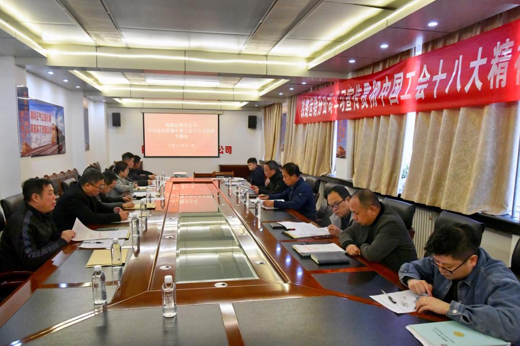 會(huì)上,首先傳達(dá)了上級(jí)工會(huì)關(guān)于組織開(kāi)展好學(xué)習(xí)宣傳貫徹中國(guó)工會(huì)十八大精神專(zhuān)題會(huì)的重要指示精神,通過(guò)全體與會(huì)人員輪流領(lǐng)學(xué)、互動(dòng)交流的方式,深入學(xué)習(xí)了《習(xí)近平總書(shū)記同中華全國(guó)總工會(huì)新一屆領(lǐng)導(dǎo)班子成員集體談話和中國(guó)工會(huì)十八大精神傳達(dá)提綱》《中華全國(guó)總工會(huì)關(guān)于認(rèn)真學(xué)習(xí)宣傳貫徹習(xí)近平總書(shū)記重要講話精神努力完成中國(guó)工會(huì)十八大確定的目標(biāo)任務(wù)的通知》精神,并以文件形式下發(fā)了《鐵路運(yùn)銷(xiāo)分公司工會(huì)關(guān)于認(rèn)真學(xué)習(xí)宣傳貫徹中國(guó)工會(huì)第十八次全國(guó)代表大會(huì)精神的通知》。