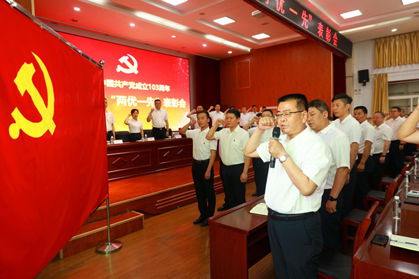 6月28日,玉華礦召開慶祝中國共產(chǎn)黨成立103周年暨“兩優(yōu)一先”表彰會。礦領(lǐng)導(dǎo)班子成員和機(jī)關(guān)科室、基層單位負(fù)責(zé)人,納新黨員和受表彰的先進(jìn)集體和先進(jìn)個(gè)人參加會議。