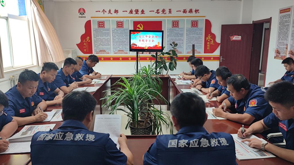 緊抓“學(xué)習(xí)實(shí)效”,堅(jiān)持方法多樣靈活學(xué)。大隊(duì)充分利用宣傳展板、LED屏、報(bào)紙等傳統(tǒng)載體,大力宣傳二十屆三中全會(huì)精神學(xué)習(xí)要點(diǎn),利用工作群及時(shí)跟進(jìn)轉(zhuǎn)載《人民日?qǐng)?bào)》、新華社相關(guān)重點(diǎn)評(píng)論和深度報(bào)道,進(jìn)一步做好理論宣傳和闡釋。同時(shí),活用學(xué)習(xí)強(qiáng)國(guó),不斷拓寬干部職工學(xué)習(xí)貫徹全會(huì)精神的廣度和深度,并通過(guò)研討交流、撰寫心得體會(huì)等方式,對(duì)照全會(huì)精神要求、對(duì)照國(guó)家應(yīng)急救援隊(duì)伍的職責(zé)使命,指戰(zhàn)員們暢談學(xué)習(xí)感悟,進(jìn)一步深化理解認(rèn)識(shí),全面領(lǐng)會(huì)黨的二十屆三中全會(huì)精神,讓學(xué)習(xí)效果持續(xù)“發(fā)酵”。