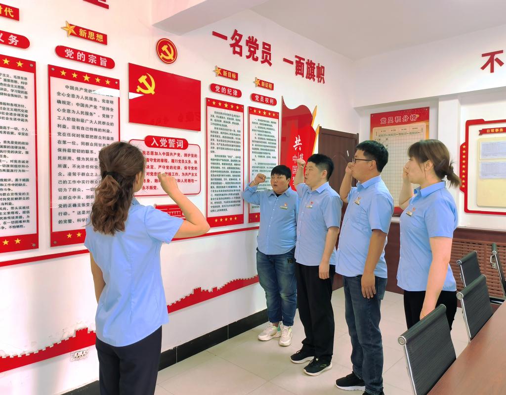 重溫入黨誓詞表心聲。“我志愿加入中國共產(chǎn)黨,擁護(hù)黨的綱領(lǐng),遵守黨的章程,履行黨員義務(wù),執(zhí)行黨的決定,嚴(yán)守黨的紀(jì)律,保守黨的秘密,對黨忠誠,積極工作,為共產(chǎn)主義奮斗終身,隨時(shí)準(zhǔn)備為黨和人民犧牲一切,永不叛黨?!边@80個(gè)字,承載著一代代共產(chǎn)黨人的奮斗與信仰。全體黨員佩戴黨員徽章、整齊列隊(duì)、面向黨旗肅立。胸前的黨徽與面前的黨旗交相輝映,熠熠生輝。大家面對鮮紅黨旗,高舉右手,以整齊劃一的動作重溫入黨誓詞。隨著領(lǐng)誓人洪亮的聲音,大家齊聲莊嚴(yán)宣誓,那鏗鏘有力的聲音在室內(nèi)回蕩,如同激昂的戰(zhàn)歌,傳達(dá)出身為共產(chǎn)黨員的強(qiáng)烈自豪感和神圣使命感。重溫入黨誓詞后,全體黨員紛紛表示,在今后的工作中將永葆共產(chǎn)黨員政治本色,繼續(xù)以更加飽滿的激情、更加昂揚(yáng)的斗志、更加扎實(shí)的作風(fēng),真抓實(shí)干、攻堅(jiān)克難、砥礪奮進(jìn),推動公司各項(xiàng)事業(yè)再上新臺階,貢獻(xiàn)自己的一份力量。