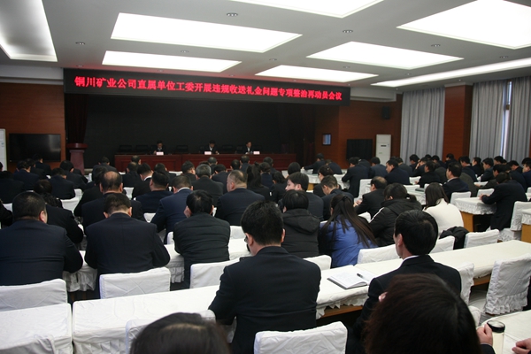1月22日,公司直屬工委在機(jī)關(guān)五樓會(huì)議室召開違規(guī)收送禮金問(wèn)題專項(xiàng)整治工作再動(dòng)員會(huì),貫徹落實(shí)陜煤集團(tuán)、公司專項(xiàng)整治再動(dòng)員會(huì)議精神,對(duì)公司機(jī)關(guān)專項(xiàng)整治工作再動(dòng)員、再部署。公司副總、部門負(fù)責(zé)人、副處級(jí)領(lǐng)導(dǎo)干部和工作人員共計(jì)150人參加會(huì)議。