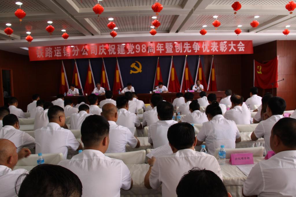 在中國共產(chǎn)黨成立98周年即將到來之際,6月28日下午,鐵運分公司慶祝建黨98周年暨2017—2018年度創(chuàng)先爭優(yōu)表彰大會在二樓會議室召開。分公司黨政領導、副科級以上領導干部、受表彰的先進集體和先進個人代表、新發(fā)展的中共預備黨員參加了會議。