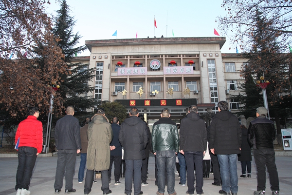 1月1日一大早,金華山礦干部職工在寬敞整潔的辦公樓大院舉行慶元旦升旗儀式,以這種特有方式喜迎新年到來。