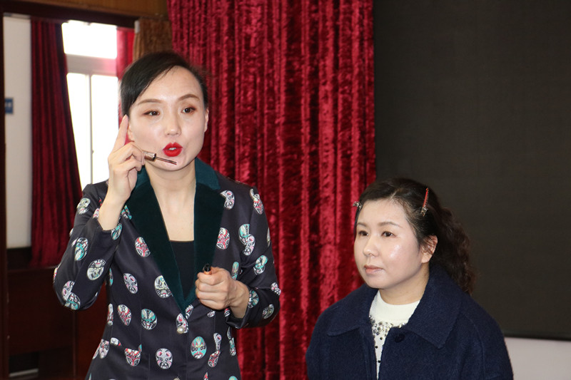 李老師圍繞“魅力女性 美麗生活”為主題,從打造美麗儀表美化、辦公室女性淡雅妝以及化妝的認(rèn)識和應(yīng)用三個(gè)方面進(jìn)行了講解。分享了如何進(jìn)行妝前保養(yǎng)、化妝的基本步驟、面部的黃金比例、如何修眉和畫眉等自己多年從事美容、美發(fā)、彩妝行業(yè)的心得體會(huì)。并配合講座內(nèi)容邀請了一名學(xué)員作為模特進(jìn)行現(xiàn)場教學(xué)示范,將化妝美容步驟進(jìn)行逐一分解,闡明每一個(gè)步驟的重要性。