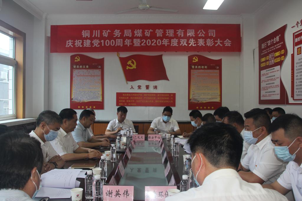 為慶祝建黨100周年,6月29日上午,煤礦管理公司在三樓黨政會議室召開慶祝建黨100周年暨2020年度雙先表彰大會,公司副總以上領(lǐng)導(dǎo)、機關(guān)各部門負責(zé)人、各項目部受表彰代表共25人參加了會議。