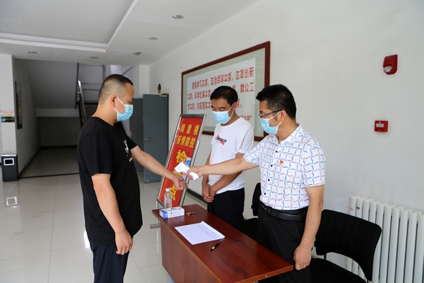 該礦區(qū)隊(duì)樓、信息樓前的防疫檢查點(diǎn),黨群部門的黨員們積極為上下班的職工測量體溫,嚴(yán)格核實(shí)進(jìn)入辦公區(qū)域的個(gè)人信息。從晨曦微露到夕陽西下,黨員們堅(jiān)守的身影讓每一名上下班的干部職工感到既溫暖又安心。
