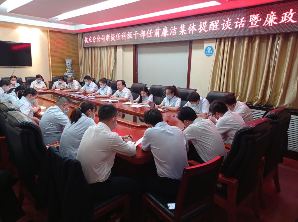 為認(rèn)真貫徹黨風(fēng)廉政教育和廉潔文化進(jìn)崗位進(jìn)家庭的要求,近日,供應(yīng)分公司對新提任的科級干部進(jìn)行了任前廉潔集體談話暨廉政知識考試,希望年輕干部謹(jǐn)小慎微恪守從業(yè)紀(jì)律,真正扣好“第一粒扣子”。