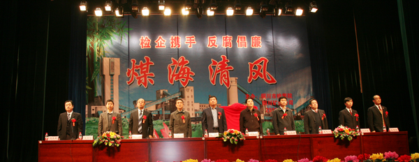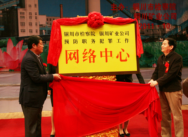 陜西省第二家、陜西煤化集團(tuán)和銅川市首家檢企預(yù)防職務(wù)犯罪工作網(wǎng)絡(luò)中心揭牌儀式,10月25日上午在銅川礦工俱樂部隆重舉行。隨著省高檢副檢察長(zhǎng)史建泉,陜西煤化集團(tuán)公司紀(jì)委書記吳衛(wèi)平,銅川市委常委、紀(jì)委書記趙曉明,銅川市委常委、政法委書記袁丁興,銅川市檢察院檢察長(zhǎng)王其敏,銅川礦業(yè)公司總經(jīng)理(局長(zhǎng))宋志剛,公司(局)黨委書記黃河等領(lǐng)導(dǎo)參加會(huì)議并為網(wǎng)絡(luò)中心揭牌,標(biāo)志著檢企聯(lián)手共同預(yù)防職務(wù)犯罪的一種新的工作形式在銅川礦業(yè)公司正式啟動(dòng)。