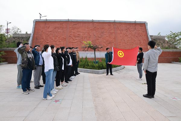 五四期間,該礦22名團(tuán)員青年在軍臺(tái)嶺戰(zhàn)斗紀(jì)念碑前,深切緬懷革命先烈,面對(duì)團(tuán)旗重溫入團(tuán)誓詞,高呼“強(qiáng)國(guó)有我”的時(shí)代強(qiáng)音響徹銅川市軍臺(tái)嶺戰(zhàn)役遺址上空。