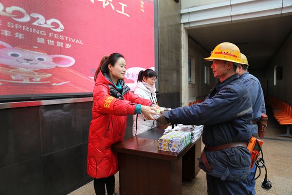 喜迎新年送溫暖,聲聲祝福保安全。除夕這天,陳家山煤礦女工委組織家屬協(xié)管早早來(lái)到井口服務(wù)站,一陣忙活準(zhǔn)備后,親手將精心準(zhǔn)備的毛巾、香皂等慰問(wèn)品發(fā)放到春節(jié)期間堅(jiān)守崗位的井上下職工手中,并熱情地向他們致以節(jié)日問(wèn)候,囑咐他們要時(shí)刻緊繃安全弦,堅(jiān)守好工作崗位。