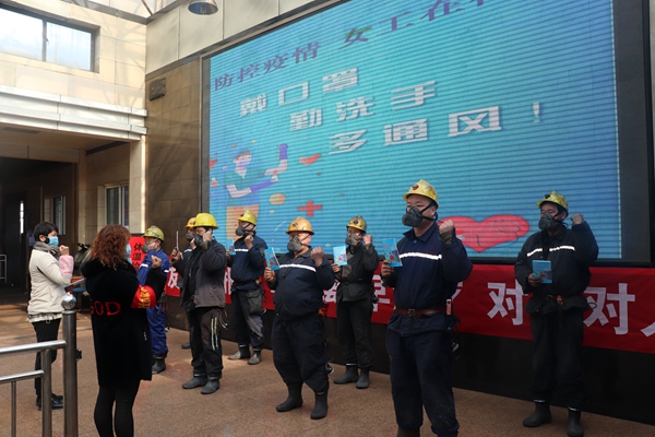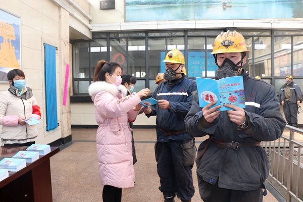 2月5日上午,陳家山煤礦工會組織女工開展新冠病毒疫情防控宣傳活動。