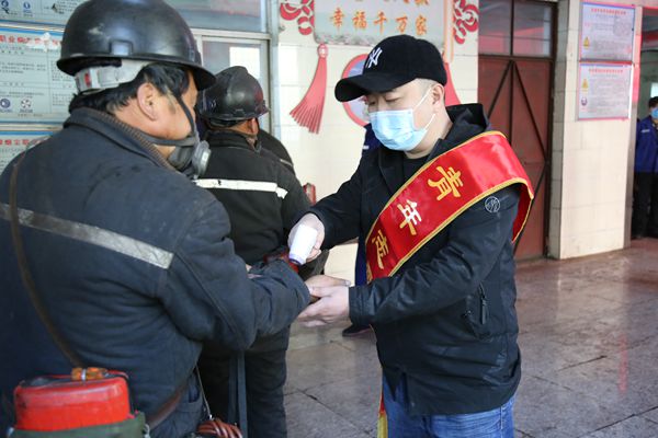 春節(jié)后復(fù)工復(fù)產(chǎn)后,該項(xiàng)目部青年志愿者們毅然挺身而出,積極投身新冠肺炎疫情防控“沒(méi)有硝煙的戰(zhàn)場(chǎng)”上,無(wú)論在職工單身樓、職工餐廳、辦公樓前、井口還是機(jī)修車間,都能看到青年志愿者服務(wù)的身影。他們無(wú)所畏懼,以實(shí)際行動(dòng)展現(xiàn)時(shí)代精神,振奮戰(zhàn)疫一線。他們?yōu)槁毠y(cè)量體溫、發(fā)放疫情防控資料,普及疫情防控知識(shí),提高員工對(duì)新冠肺炎的認(rèn)知和預(yù)防能力,增強(qiáng)全體職工的疫情防控意識(shí);及時(shí)了解掌握返礦員工身體狀況,正確地開(kāi)展好防疫防控工作。疫情當(dāng)前,“不忘初心、牢記使命”,3月5日,在礦部辦公樓前,書寫“眾志成城戰(zhàn)疫情、齊心協(xié)力保安全”的橫幅醒目刺眼,項(xiàng)目部青年志愿者身披綬帶,精神抖擻,為上下班的職工送上口罩,發(fā)放疫情防控宣傳單,開(kāi)展疫情防控宣傳。