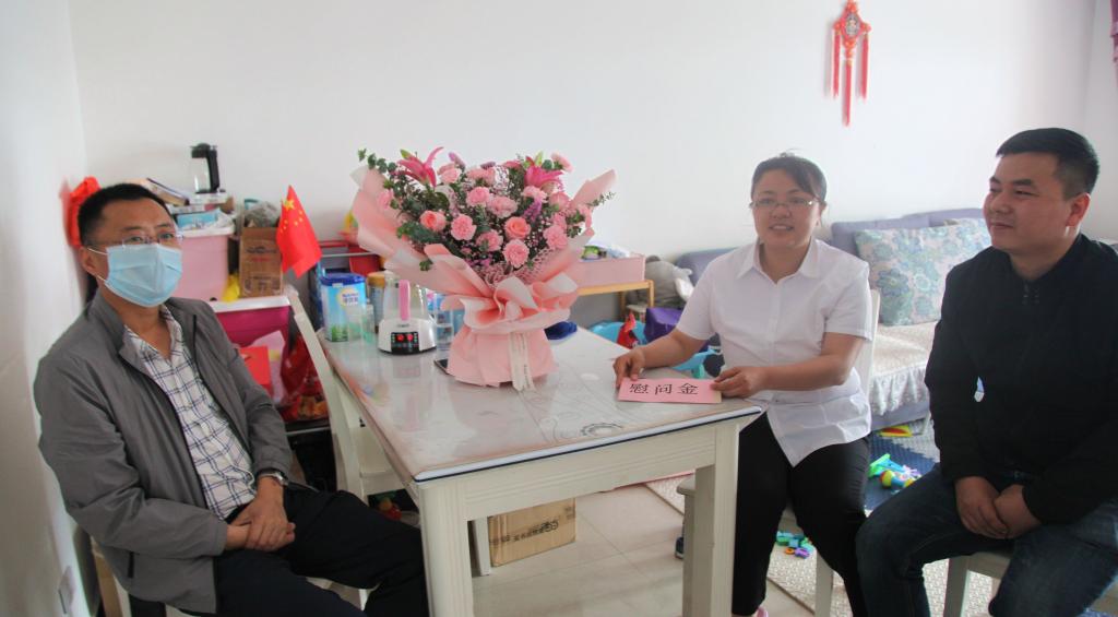 5.12國際護(hù)士節(jié)前夕,欣盛煤機(jī)公司工會(huì)及車間負(fù)責(zé)人一行受公司黨政委托,專程到職工孫戰(zhàn)家中,看望慰問他的妻子,援鄂抗疫醫(yī)護(hù)人員王亞麗,代表公司全體職工向夫妻二人致以崇高的敬意和誠摯的問候,并送上了慰問金和慰問品。
