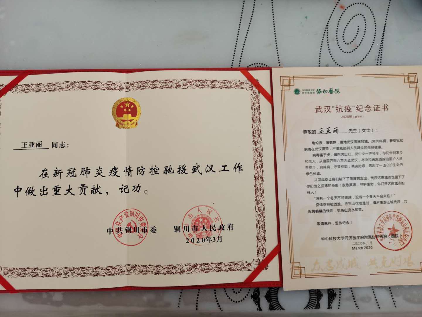 據(jù)了解,王亞麗在新冠肺炎疫情防控馳援武漢工作中做出重大貢獻(xiàn)被銅川市委市政府記功一次,孫戰(zhàn)獲陜西陜煤銅川礦業(yè)有限公司2019年度“先進(jìn)個(gè)人”榮譽(yù)稱號。
