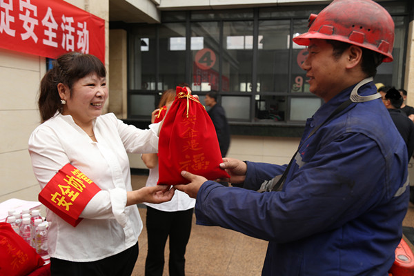 6月11日下午,陳家山煤礦工會(huì)女工委在井口開展“獻(xiàn)愛心 促安全”活動(dòng),為一線職工們送上精美的安全福袋和安全囑托。