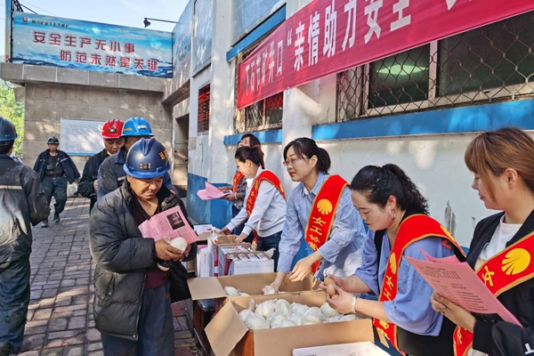 活動(dòng)期間,礦女工委組織部分女工小組長(zhǎng)和一些家屬,通過(guò)印制分發(fā)煤礦安全小常識(shí),生活必備安全知識(shí)等宣傳資料,為入井職工準(zhǔn)備了礦泉水、雞蛋、食品等慰問(wèn)品。同時(shí),女工協(xié)管員們還為上下井職工送上一句句溫馨的祝福語(yǔ),“工作中一定要按章作業(yè)、你們的妻兒在等你平安回家”“安全工作就是對(duì)家里最好的回報(bào)”“你安全的工作,我們?cè)诩也拍芊判摹薄宦暵曎N心問(wèn)候,一句句深情的叮囑,讓廣大職工感受到了家的溫暖和愛意,也在每個(gè)即將入井步入工作崗位的職工心中筑牢了安全第一道防線。