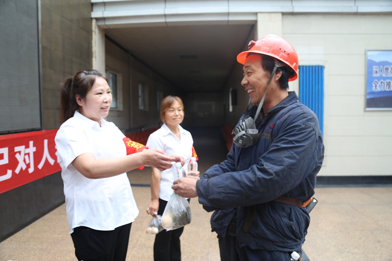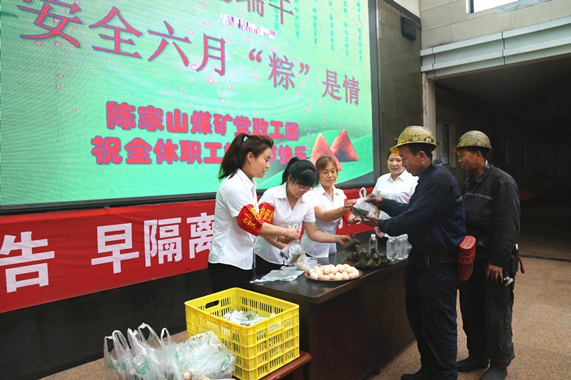 6月25日,陳家山煤礦工會組織女工協(xié)管員在井口候車室開展“濃情端午送祝福 囑安全”活動,向職工們送上端午祝福和安全囑托。