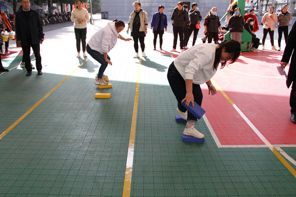 手提麻袋,像袋鼠一樣地蹦跳、接力,圍觀者吶喊聲如潮。盡管前面幾項活動比較費力,但是在袋鼠跳這一游戲環(huán)節(jié),大家還是精神飽滿;隨著裁判一聲哨響,女工們套著袋子全力朝對面隊友奔跳而去,吶喊聲、助威聲……此起彼伏,響徹整個文化廣場。