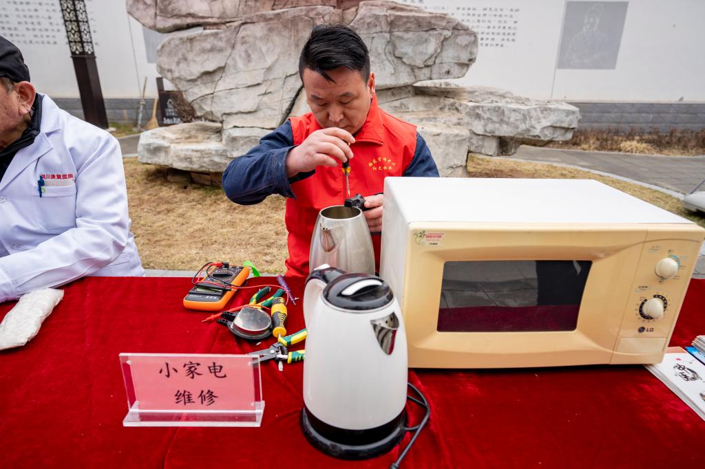 “小服務(wù)”匯聚“大幸福”。梅苑小區(qū)便民服務(wù)點(diǎn)前,志愿者們?yōu)榫用裉峁坌睦戆l(fā)、小家電維修、愛心茶水、政策咨詢等多項(xiàng)服務(wù)?!凹敉觐^發(fā)精神多了!”“電水壺修好了,省得買新的......”住戶們臉上洋溢的笑容,成為志愿服務(wù)最生動(dòng)的注腳。