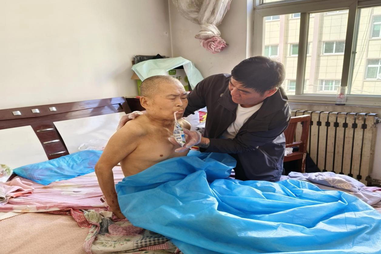 在這場(chǎng)愛心接力中,該中心運(yùn)行部長(zhǎng)劉小兵以真摯的情感和實(shí)際行動(dòng)成為最溫暖的“接力者”。他毫不猶豫地主動(dòng)承擔(dān)起照料重任,每天早早到李銀虎家中,為他洗漱、擦拭身體,準(zhǔn)備營(yíng)養(yǎng)早餐并耐心喂食;每隔一段時(shí)間為他翻身、按摩,預(yù)防臥床并發(fā)癥;工作間隙匆匆趕去陪他聊天讀報(bào),用歡聲笑語驅(qū)散孤獨(dú);夜晚安頓他休息后才離開。劉小兵的每一步都飽含溫情,每一個(gè)細(xì)節(jié)都彰顯初心。