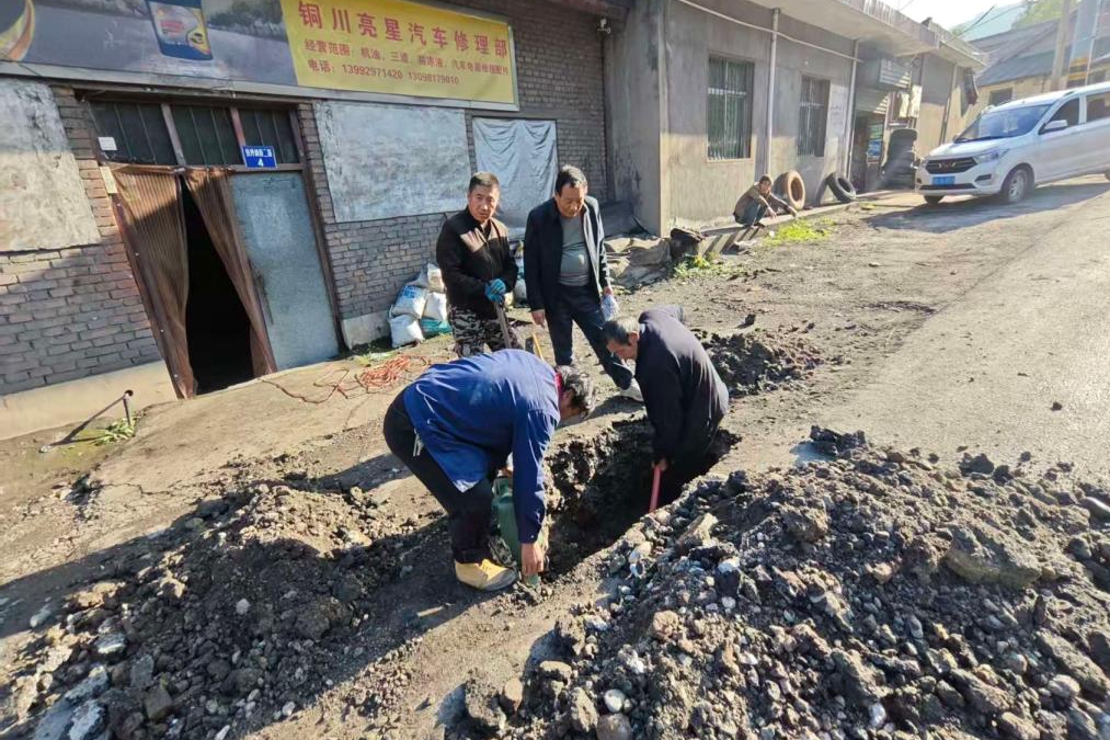 沿著玉華煤礦運煤專線向內(nèi)行進(jìn)約200米,路側(cè)3個長近3米、寬1米的深坑格外顯眼,這正是巡查人員精準(zhǔn)定位的漏水點?!霸偌影褎?!爭取趕在職工下班前恢復(fù)供水,讓大家回家能及時燒水做飯!”該中心負(fù)搶修人員迅速投入戰(zhàn)斗,洋鎬與鐵锨交替起落,泥土在工具下快速清運;汗水順著臉頰滑落,很快浸濕了工裝,卻沒人停下手中的活。