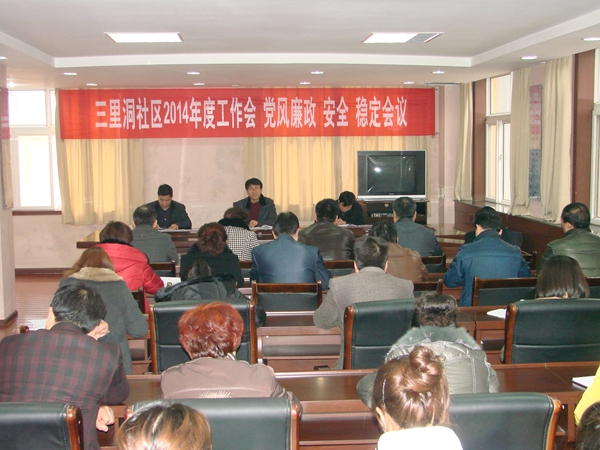 2月25日,三里洞社區(qū)召開2014年度工作會、黨風(fēng)廉政會、安全會、穩(wěn)定會,“四會合一”精簡高效,會風(fēng)求真務(wù)實。