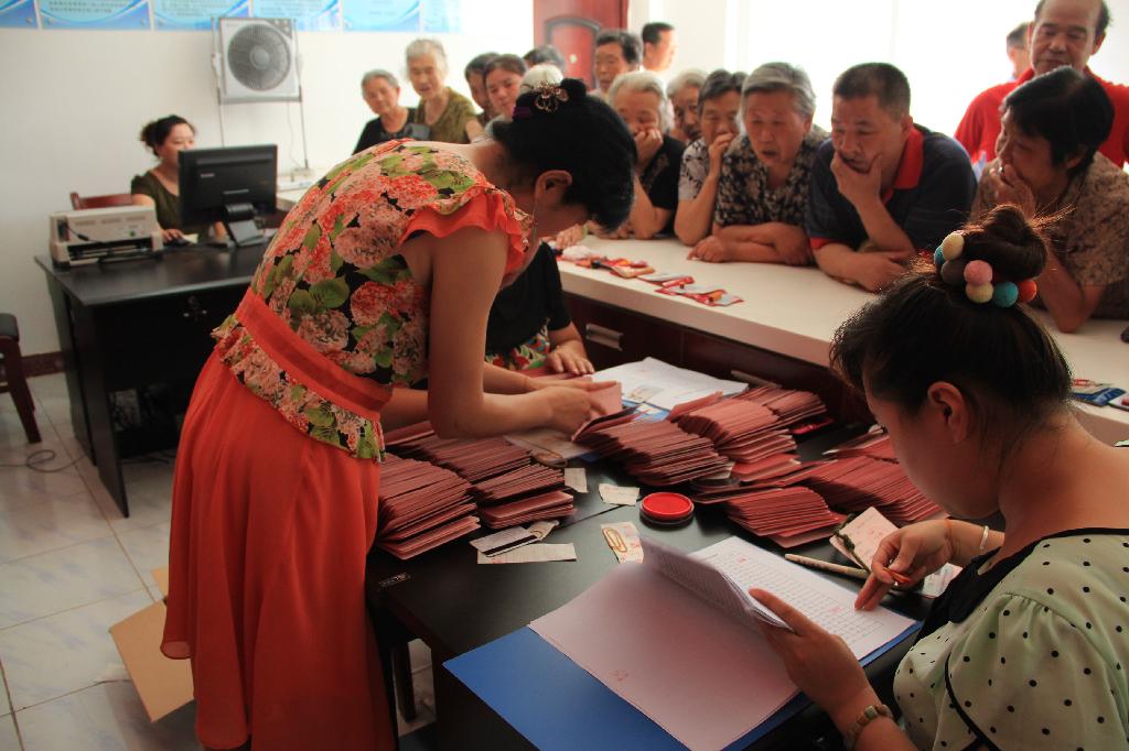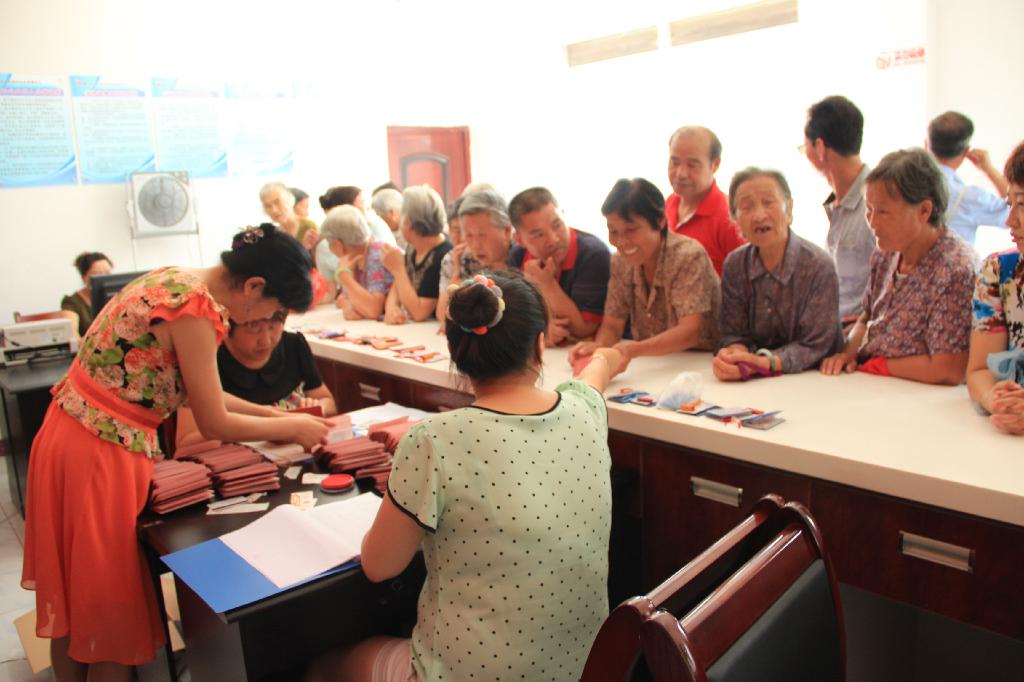 “領(lǐng)卡了,領(lǐng)卡了!”一名老太太高興的揮舞著手中的銀行卡向身邊的人說。