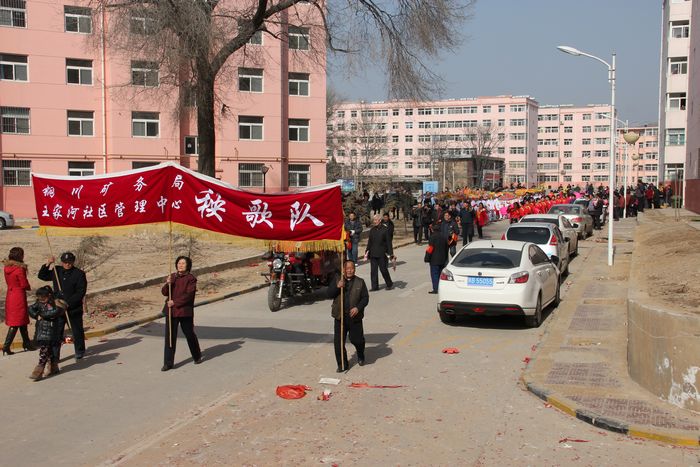 震天的鑼鼓敲出新春的喜慶,歡快的秧歌伴著鑼鼓聲扭起來(lái)。大年初一,王家河社區(qū)居民們自發(fā)組織的秧歌隊(duì),在一號(hào)井、老礦部小區(qū)扭起大秧歌,祝福新年社區(qū)居民們生活幸福安康,為轄區(qū)居民們?cè)鎏砹斯?jié)日的喜氣。鑼鼓陣陣、嗩吶聲聲,職工群眾們聚集在一起扭起歡快的大秧歌,舞起手中的彩扇和紅綢子,給新春佳節(jié)增添了濃濃的喜慶氛圍。