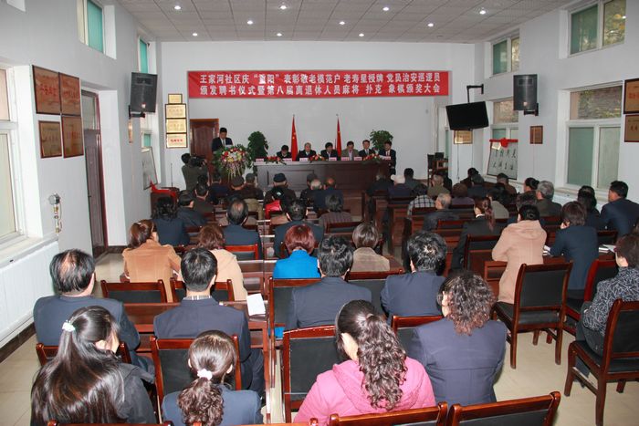 在重陽(yáng)佳節(jié)到來(lái)之際,王家河社區(qū)黨委組織召開(kāi)了“慶重陽(yáng)”表彰敬老模范戶(hù)、老壽星授牌、黨員治安巡邏員頒聘書(shū)儀式暨第八屆離退休人員棋牌賽頒獎(jiǎng)大會(huì)。銅川實(shí)業(yè)公司副總經(jīng)理劉同厚、黨群工作部部長(zhǎng)趙建業(yè)、社保部部長(zhǎng)劉永明及王家河社區(qū)干部職工群眾一同參加了此次大會(huì)。會(huì)議由社區(qū)黨總支副書(shū)記李忠保主持。